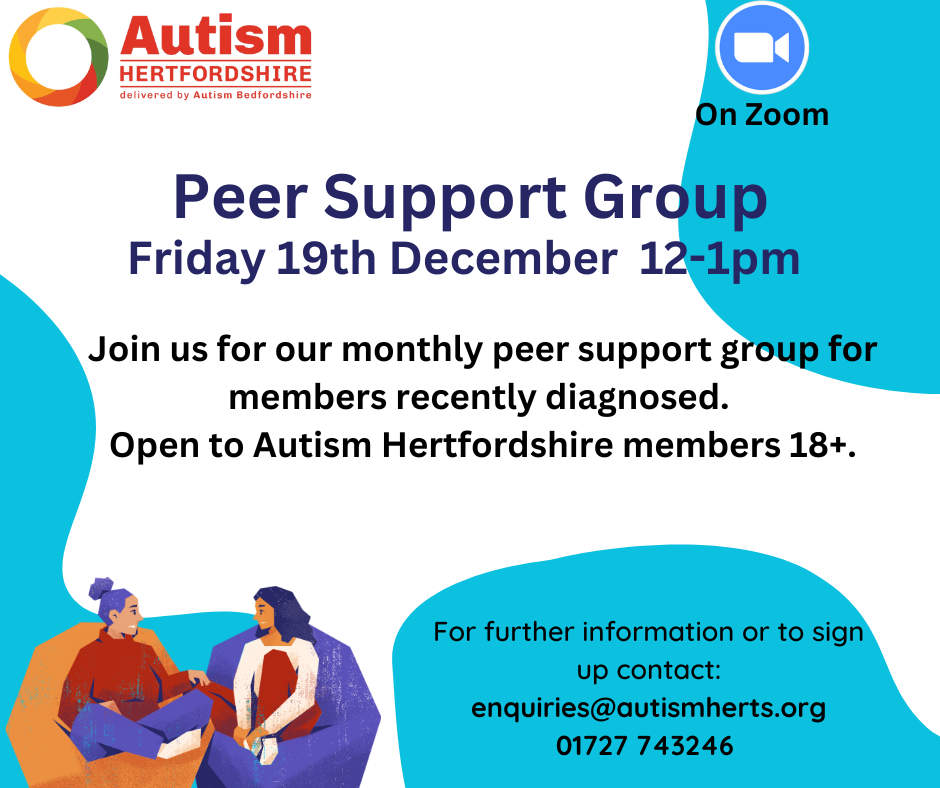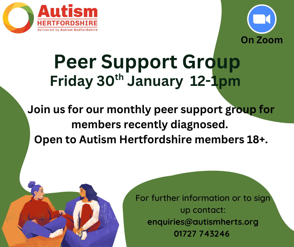 for Autism Hertfordshire - Peer group support for newly diagnosed adults, age 18+ (online)