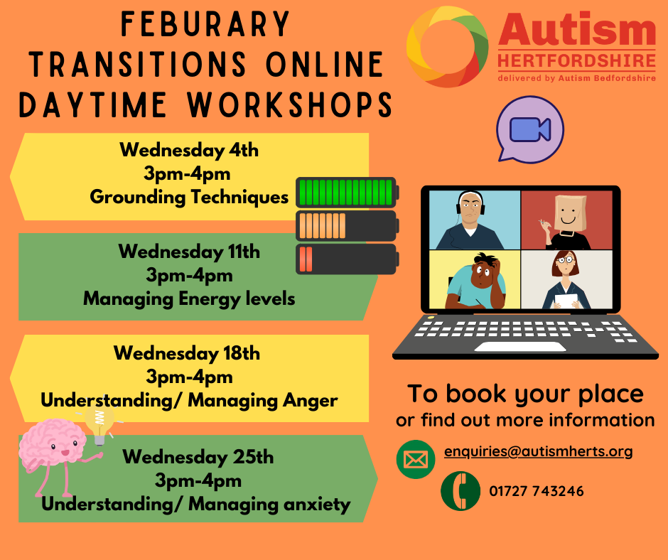 To book your place or find out more information, email enquiries@autismherts.org or phone 01727 743246