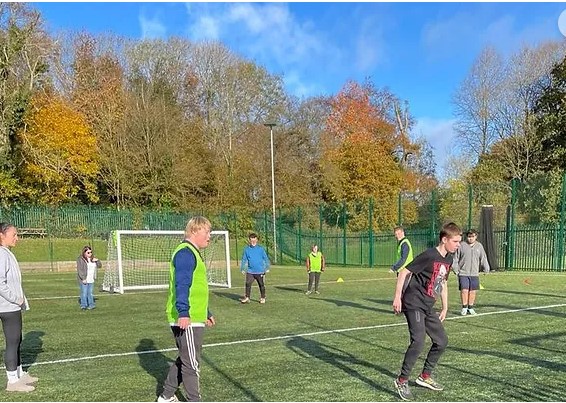 The football session takes place on the astro pitch located beside Grovehill adventure playground and afterwards inside their pavilion where they can play table tennis, pool or just rest and chat with friends.