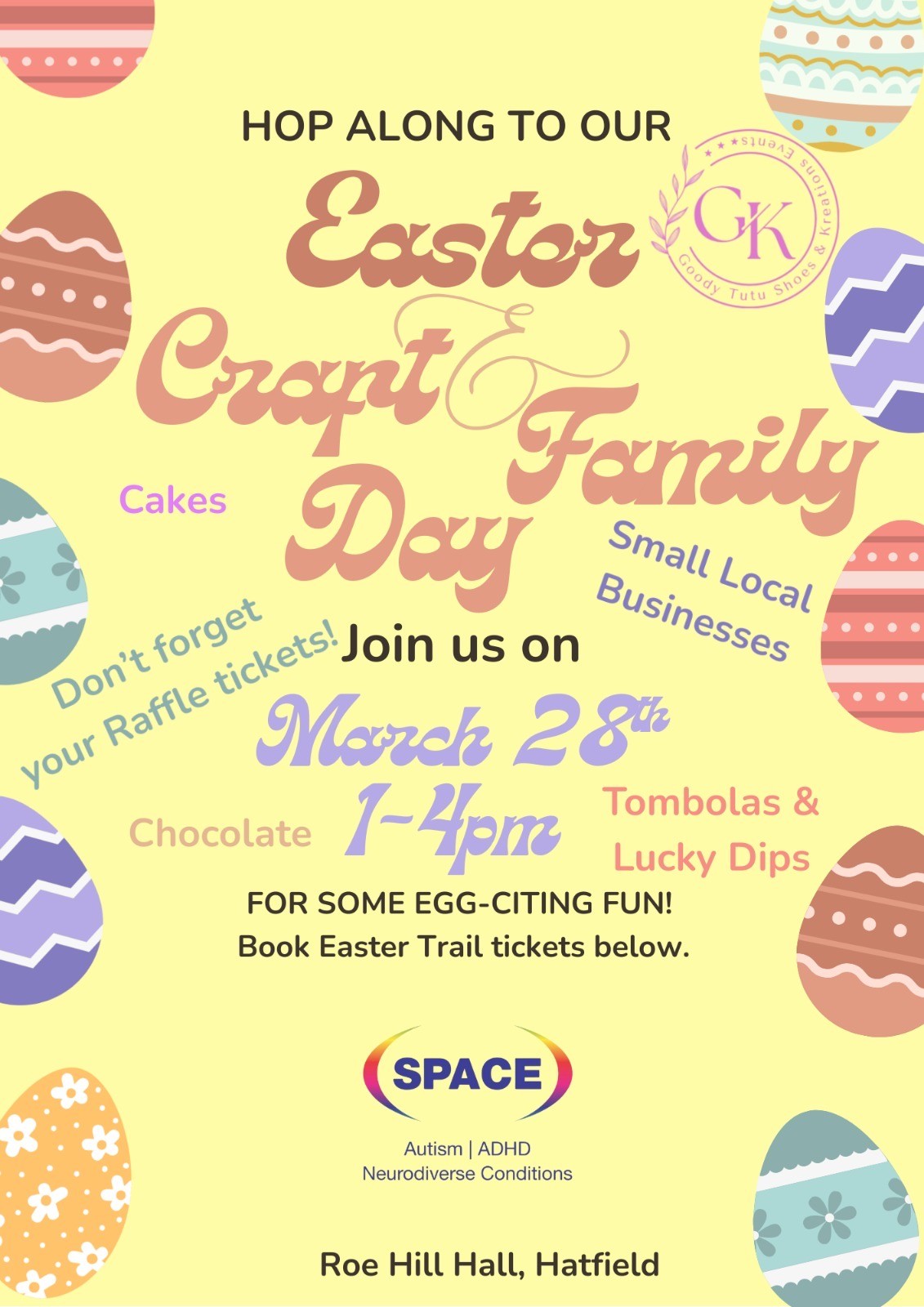 GK Events presents Easter Craft Market & Family Fun day! Raising vital funds for SPACE Hertfordshire.