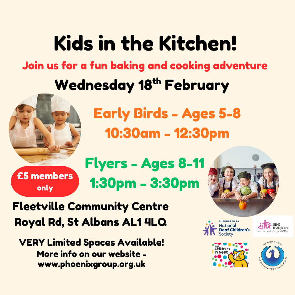 for Half term: Phoenix Group for Deaf children - Kids in the kitchen(ages 5-8)